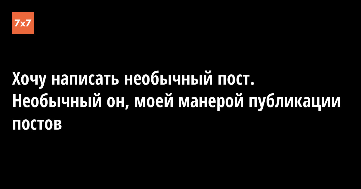 Хочу написать необычный пост. Необычный он, моей манерой публикации постов