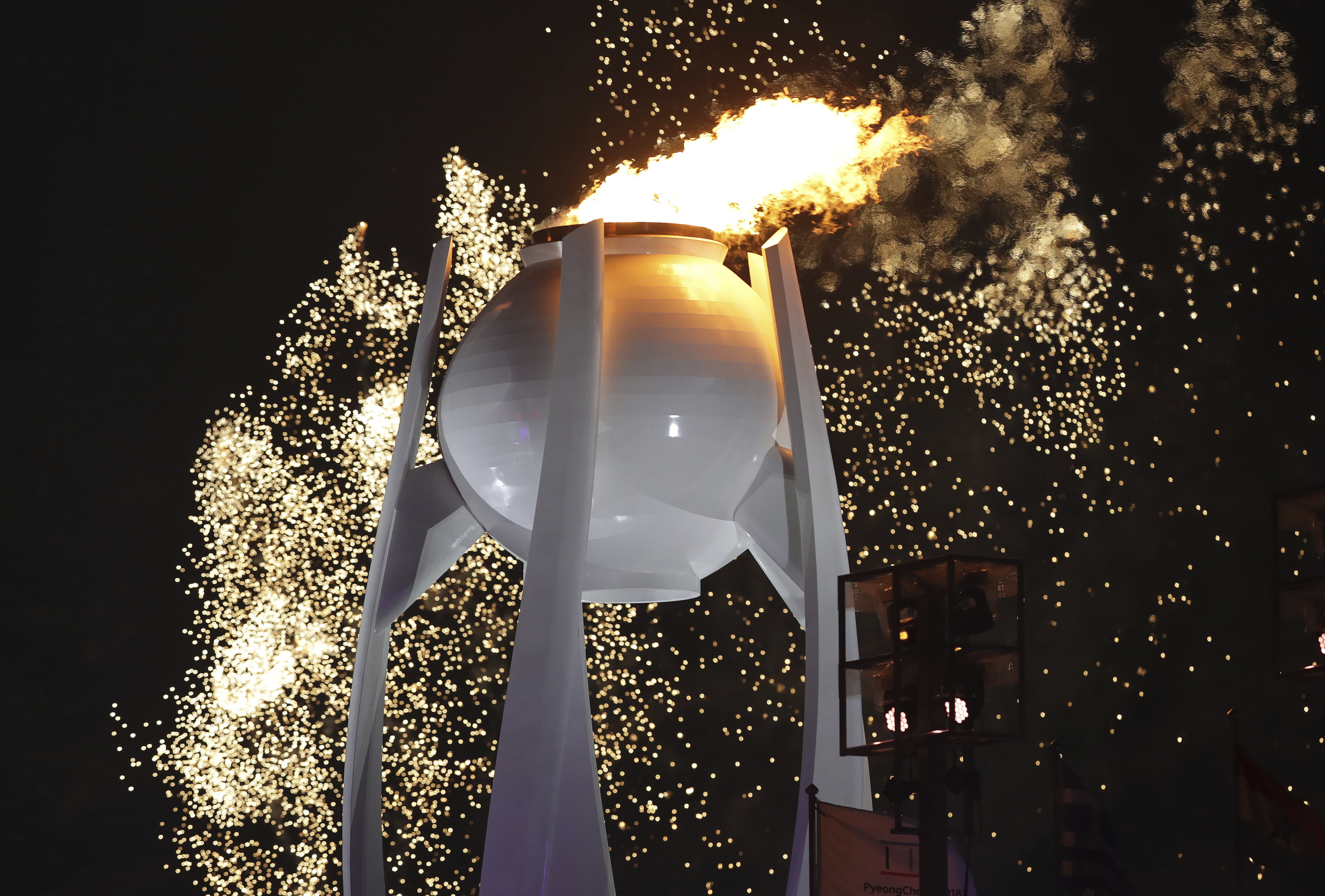 Игры официально объявил открытыми президент Южной Кореи Мун Чжэ Ин. Олимпийский огонь зажгла фигуристска Ким Ён А.
