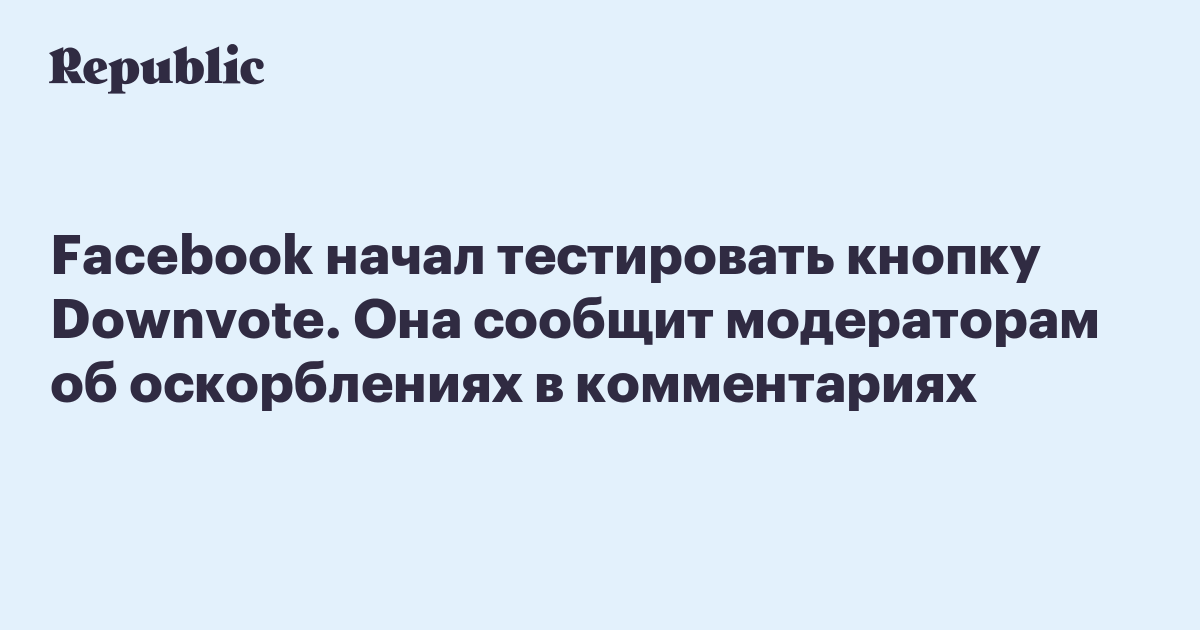 Facebook начал тестировать кнопку Downvote. Она сообщит модераторам об оскорблениях в комментариях