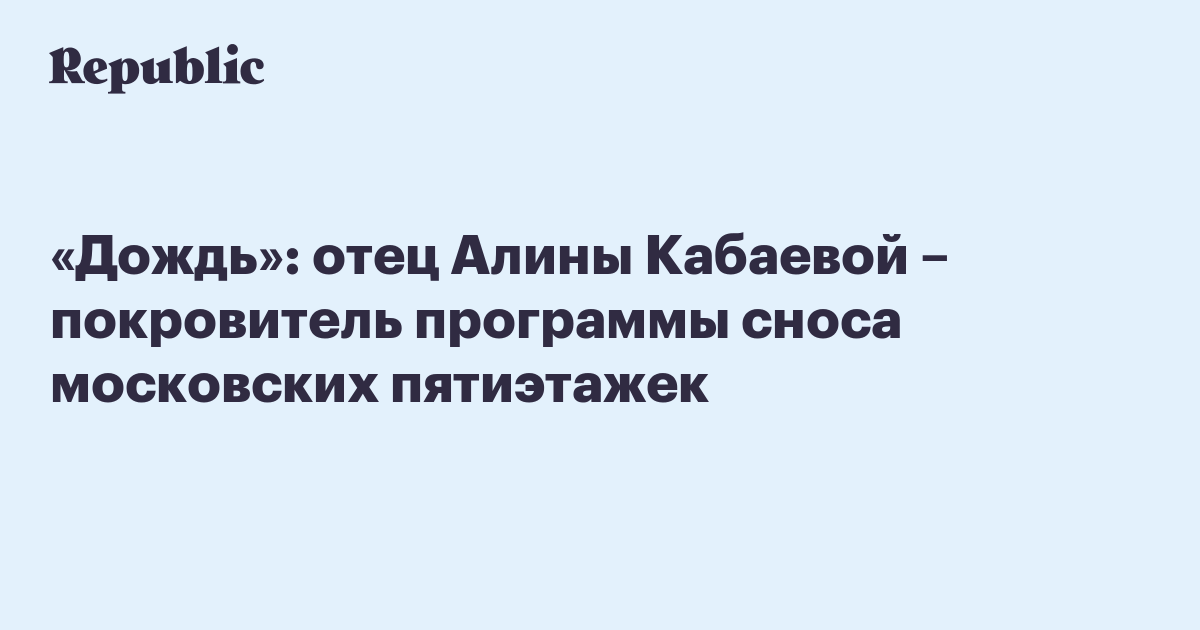 «Дождь»: отец Алины Кабаевой – покровитель программы сноса московских пятиэтажек