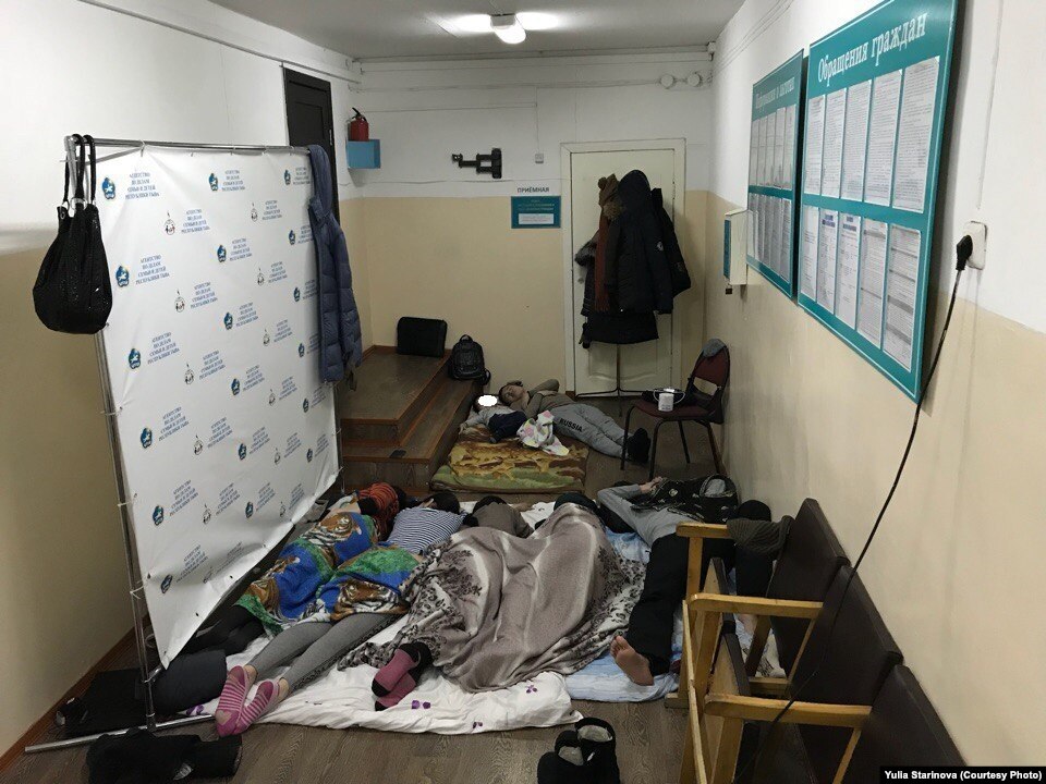 Накануне этих событий сироты встретились с директором Агентства по делам детей Саидой Сенгии и с министром строительства Тувы Евгением Овсянниковым. Когда просители заявили, что не могут больше жить в арендованных квартирах и, если проблема не решится, они с матрасами придут в агентство и будут там спать, Саида Сенгии ответила: "Приходите и живите!" – рассказывает представитель совета сирот республики Сайсуу Байкара.