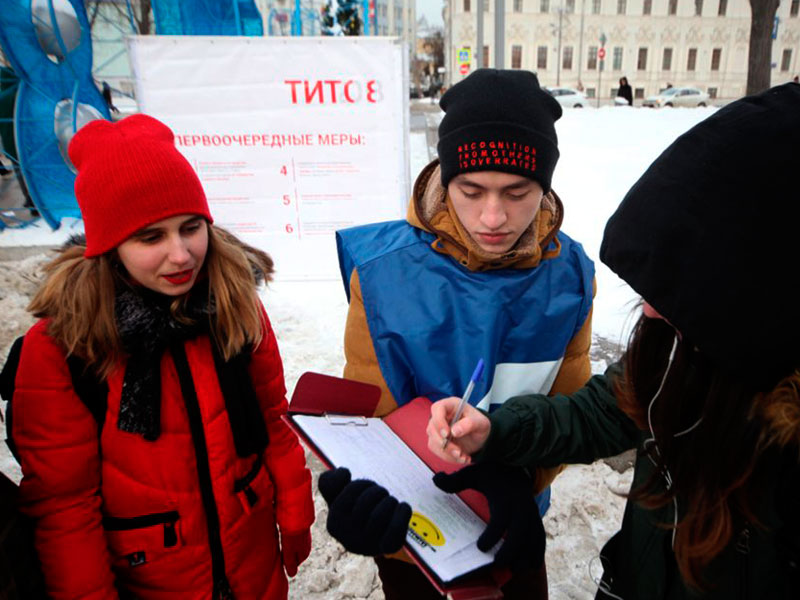 Работа штаба по сбору подписей в поддержку кандидата в президенты РФ Б.Титова / АГН "Москва" / фото: Ведяшкин Сергей Такой же логикой пользуются и ряд других выдвинутых кандидатур – для того, чтобы повысить свою узнаваемость и придать значимость своим словам, используют статус кандидата или «кандидата в кандидаты» (т.е. заявляли о выдвижении). Однако тот факт, что Титов, в отличие от других в этом же ряду, в итоге оказался зарегистрирован, является отражением новой стратегии Кремля.