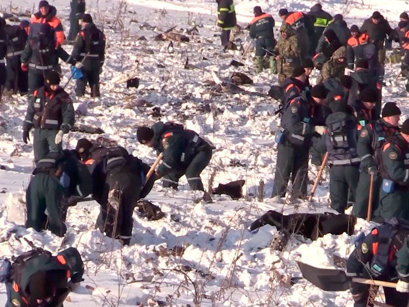 На месте падения самолета к утру 13 февраля было обнаружено почти 500 его обломков и около 1400 фрагментов тел, передает российский телеканал RT. Эти цифры были названы после того, как отряд спасателей обследовал площадь примерно в 30 гектаров вокруг самых крупных обломков самолета. Всего на месте аварии ведут поиски около 1000 человек, используется 200 единиц техники.