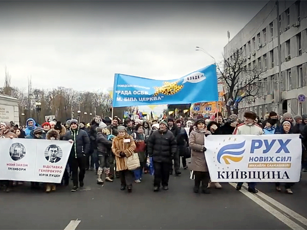 Демонстрация партии "Рух нових сил" Ruhnovihsyl Саакашвили назвал все произошедшее действиями президента Украины Петра Порошенко и он считает это проявления «слабости и крайней трусости». «И таким образом он подтвердил, что уголовное дело против меня — это полный бред, никакого государственного переворота, который я якобы совершал», — добавил Саакашвили.