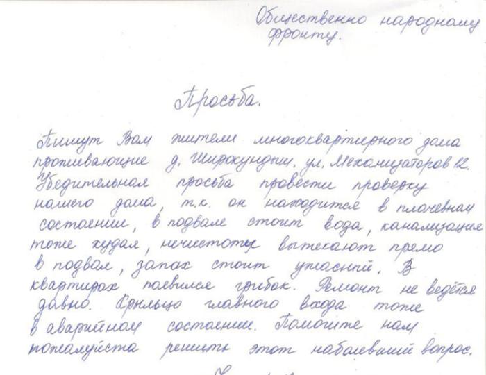 Жители нашего района обращались к ОНФ. Привожу копию письма. Список подписавшихся я не буду показывать.