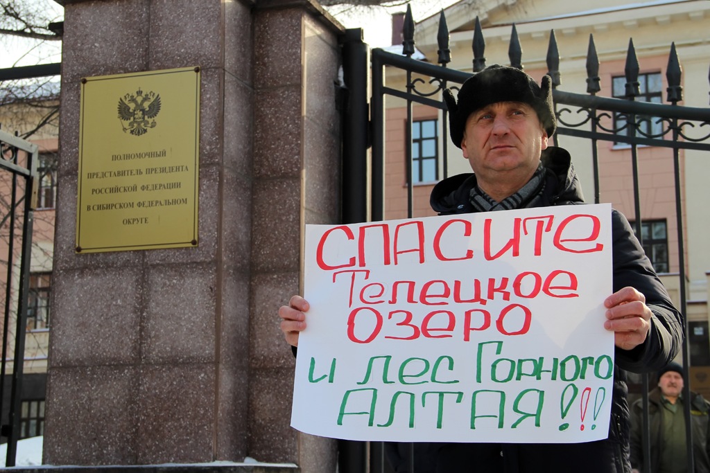 Пикет прошел 13 февраля в Новосибирске. Несколько жителей Республики Алтай приехали к зданию полпредства, чтобы обратить внимание на проблему.