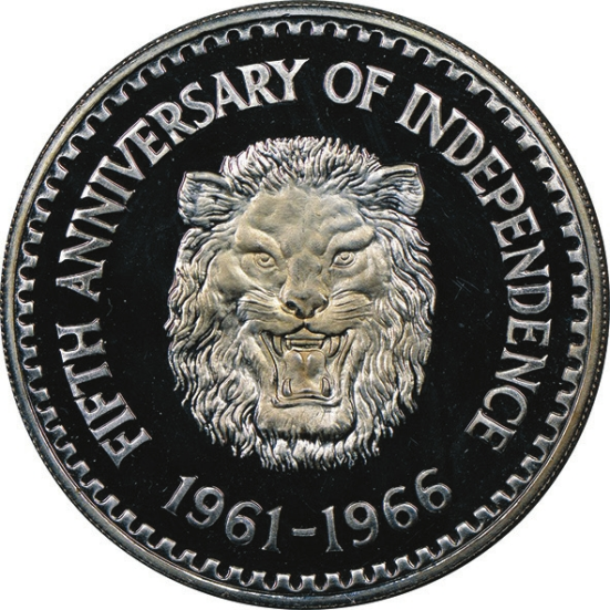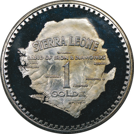 Рис. 2. Первая монета из палладия, посвященная пятилетию независимости Сьерра-Леоне
