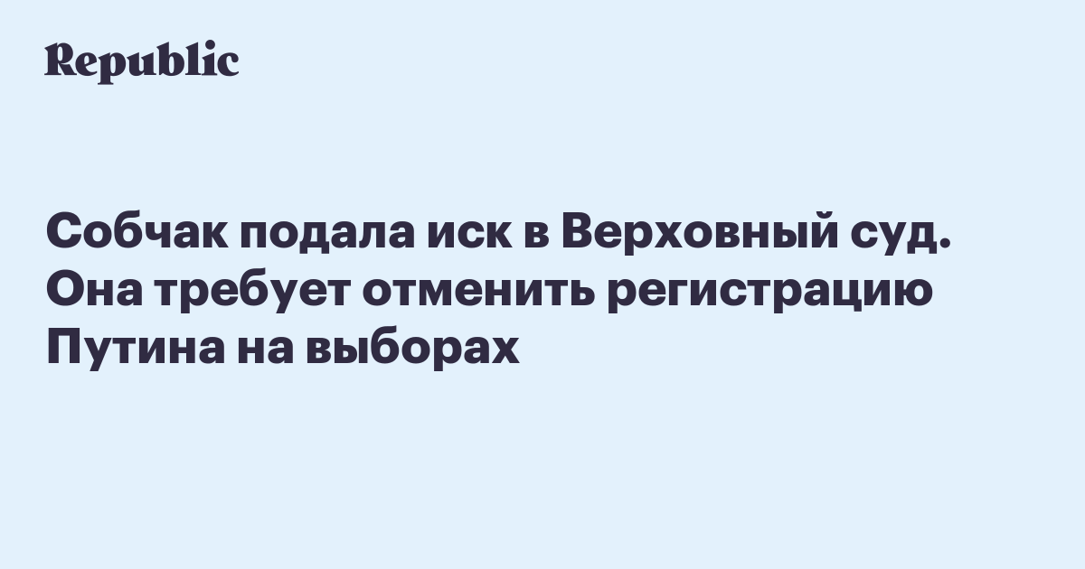 Собчак подала иск в Верховный суд. Она требует отменить регистрацию Путина на выборах