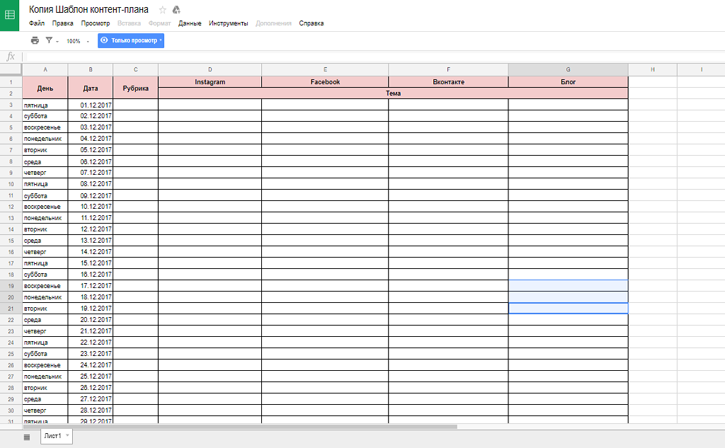 В контент-плане необходимо обозначить периодичность, частоту и тематику. Оптимальный объем и содержание постов нужно подбирать, исходя из того, в какой социальной сети вы продвигаетесь. Старайтесь выбирать день и писать посты за неделю, чтобы потом только вносить небольшие корректировки.