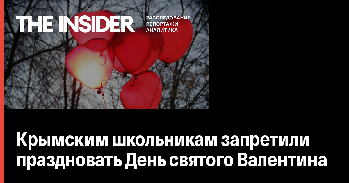 «Министерство образования, науки и молодежи Республики Крым обращает ваше внимание на то, что проведение мероприятий, посвященных Дню святого Валентина, не соответствует культурным традициям народов Крыма и не относится к праздникам, рекомендованным для проведения в образовательных учреждениях», — говорится в сообщении министерства, отправленном руководству школ.