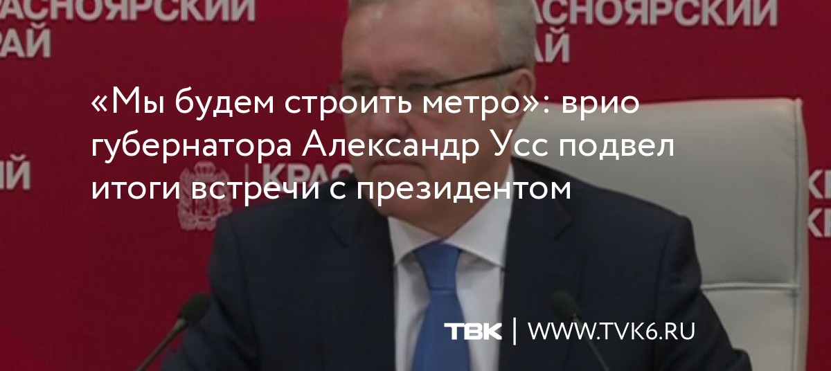 «Мы будем строить метро»: врио губернатора Александр Усс подвел итоги встречи с президентом