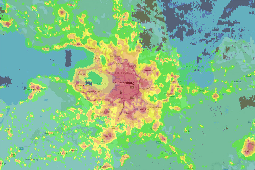 Есть мировая карта Light Pollution, с помощью которой можно анализировать, где больше света, а где — меньше. И всегда мы найдем и в Петербурге, и в Нью-Йорке места с одинаковым уровнем светового загрязнения. В формулу расчета уровня засветки входит численность населения и расстояние до города — это два ключевых фактора. Москва превосходит Петербург по числу людей — соответственно, и засветка там больше. Чем меньше город, тем больше звезд.