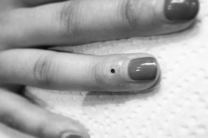 Бывало, бью я татуировку, а человек задел мою голову рукой. Я поднимаю глаза, чтобы сказать, мол, чуть поаккуратнее, пожалуйста. А у него глаза закатаны, его начинает трясти. Максимально стремно было; я снова растерялась, а у меня тогда еще и нашатыря не было. Сразу начала его по щекам бить и из спрейбатла (распылитель для работы над татуировкой — прим. «Бумаги») поливать. В итоге человек пришел в сознание, чуток отдохнул, и мы продолжили. Но случай в голове точно засел. Оказалось, он просто плохо выспался и пришел на голодный желудок.