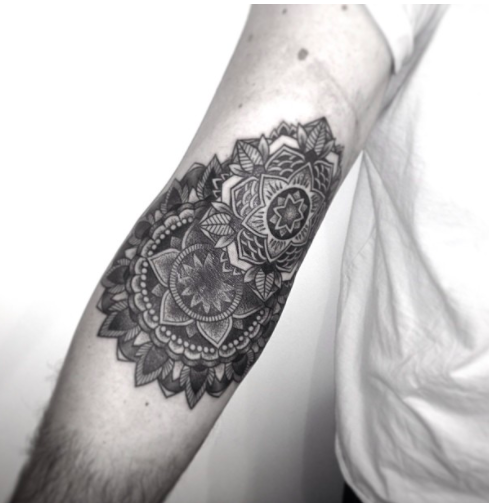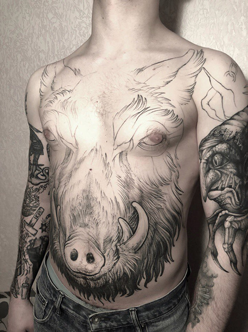 Вообще, не стыжусь своих работ. Практически сразу начал работать только по своим эскизам. Единственное, за что стыдно, — это две татуировки по чужим наброскам, которые меня еще в самом начале карьеры уговорила сделать подруга. Честно, уже даже не помню, что это было, но они уже точно переработаны и перекрыты.