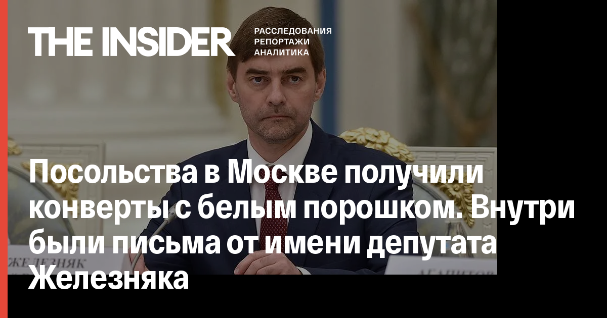 Посольства в Москве получили конверты с белым порошком. Внутри были письма от имени депутата Железняка