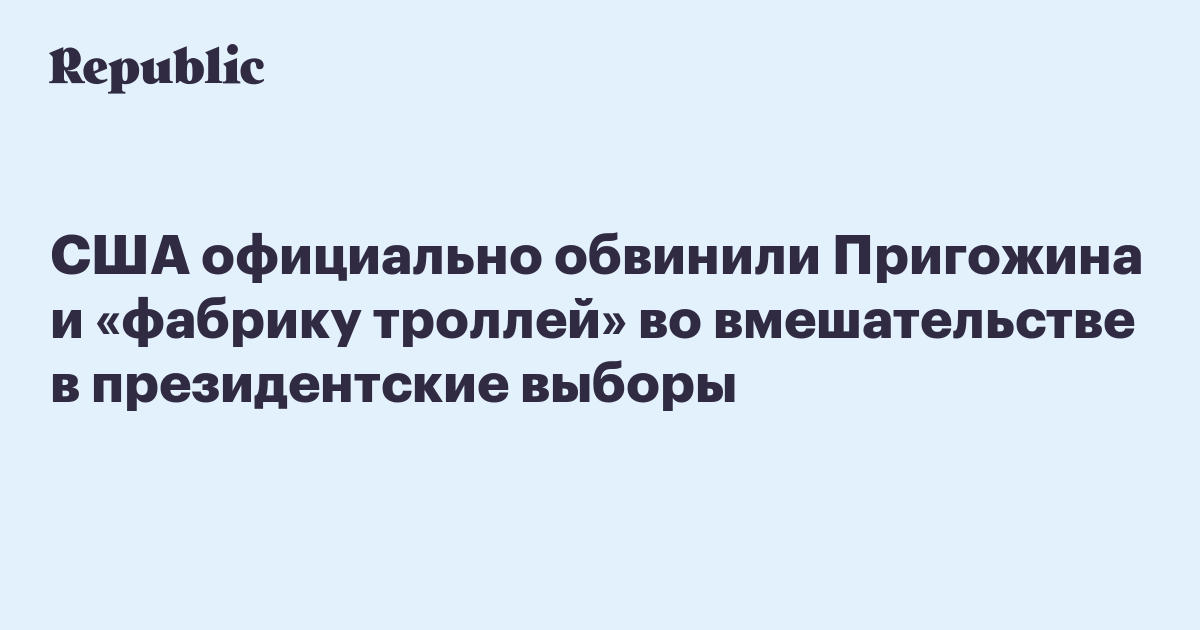 США официально обвинили Пригожина и «фабрику троллей» во вмешательстве в президентские выборы