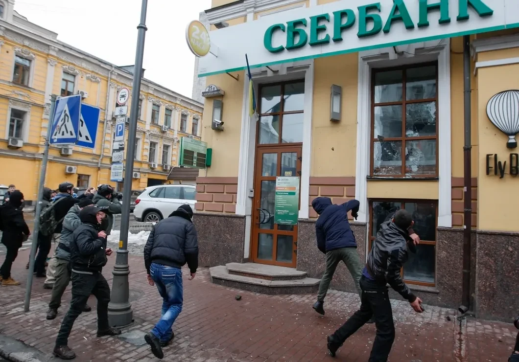 Следующая акция под названием «Смерть России!», малочисленная, но бурная, заставила полицейских оцепить улицу Борисоглебскую и прилегающие проходные дворы на Подоле не только кордонами, но и техникой. В происходящее полиция не вмешивалась. Для разминки националисты разбили окна в «Сбербанке» и «Альфа Банке», а офис «Россотрудничества» забросали камнями, яйцами, написали на стене у входа лозунг своей акции и сожгли российский флаг, — сообщает интернет-издание «Украинская правда». Накануне, в субботу, «Россотрудничество» подобным образом штурмовала радикальная организация «С-14». Сейчас правоохранители оценивают материальный ущерб, нанесенный помещениям. Людей в офисах не было.