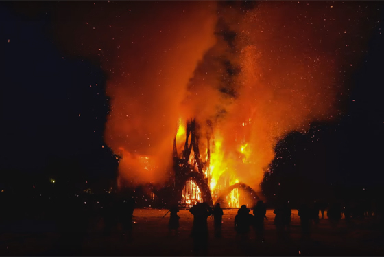© Михаил Илюшин / YouTube Представитель Русской Православной Церкви подверг критике акцию в арт-парке «Никола-Ленивец» у деревни Никола-Ленивец Калужской области, где на Масленицу сожгли готическое здание, построенное из сорного дерева.