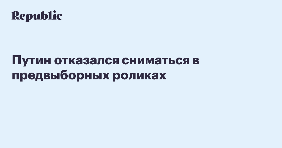 Кандидат в президенты РФ Владимир Путин не будет сниматься в собственной предвыборной видеорекламе или записывать аудиореплики. Об этом сообщает РБК со ссылкой на заявление пресс-секретаря штаба Путина Андрея Кондрашова.