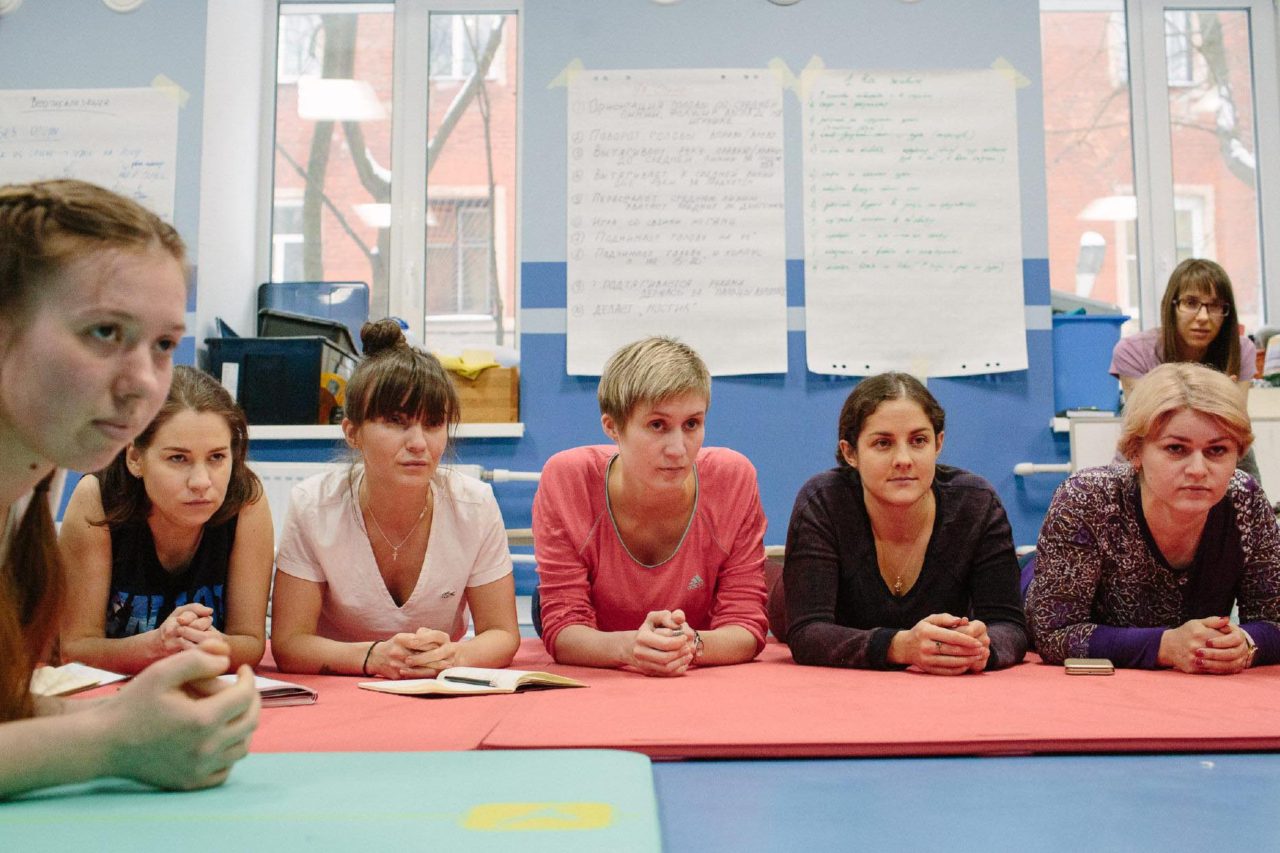 Занятия поначалу похожи на актерский этюд. Они играют. Реабилитологи, психологи, инструкторы лечебной физкультуры, работающие в сорока реабилитационных центрах от Улан-Удэ до Петербурга месяц за месяцем исполняли указания своих главных врачей, устаревшие лет на пятьдесят, и не видели результата. Читали книжки про физическую терапию и эрготерапию, смотрели вебинары, но поучиться практически было негде. Теперь они учатся.
