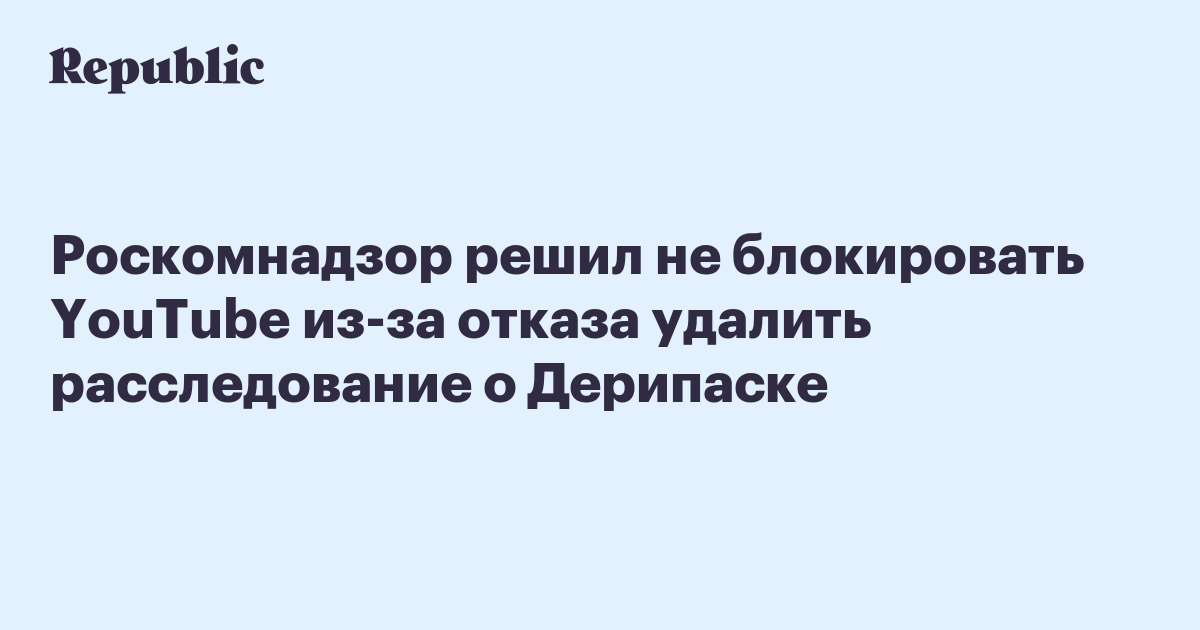 Роскомнадзор решил не блокировать YouTube из-за отказа удалить расследование о Дерипаске