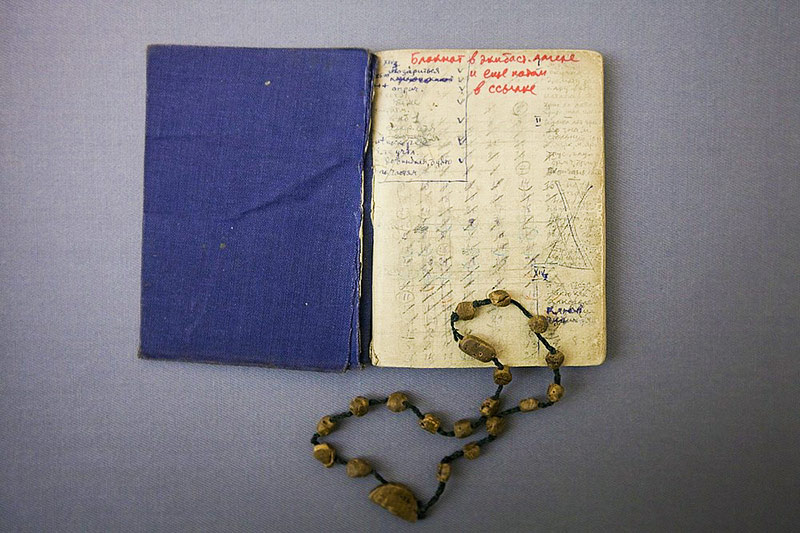 Лагерный блокнот и чётки Александра Солженицына для заучивания сочинённых произведений. 1960. Экибастуз (Казахская ССР) Архив А. И. Солженицына Фото: flickr.com/photos/leninka Это я знаю, но хотел еще спросить про конфликт. По воспоминаниям, вы у него какую-то ошибку нашли.