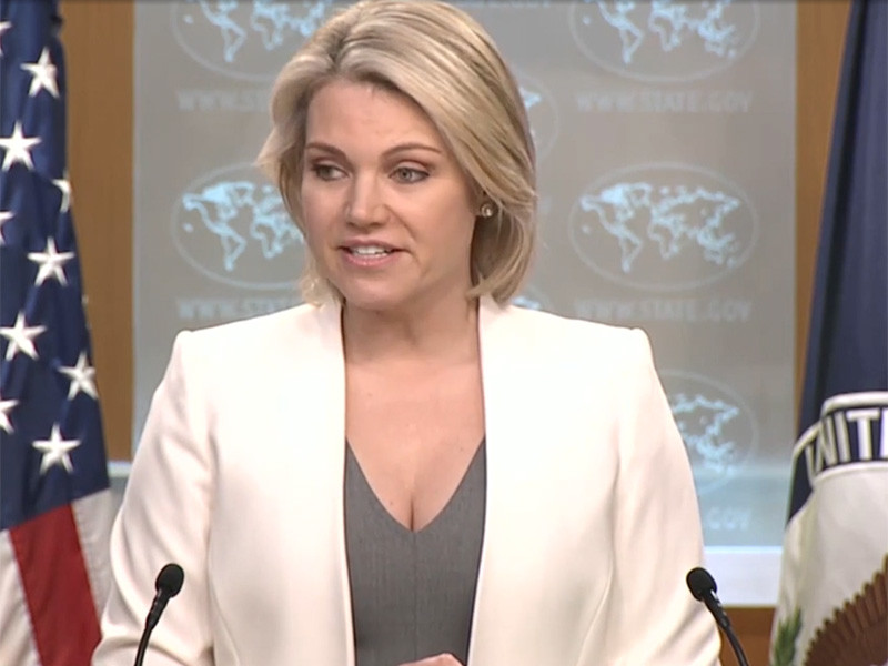 Один из журналистов поинтересовался у Нойерт, начались ли поставки США противотанковых комплексов Javelin на Украину, так как, по его выражению, это, вероятно, могло бы стать "еще одним пунктом в списке жестких действий администрации против российского правительства". Однако представительница Госдепа не смогла ответить на этот вопрос.