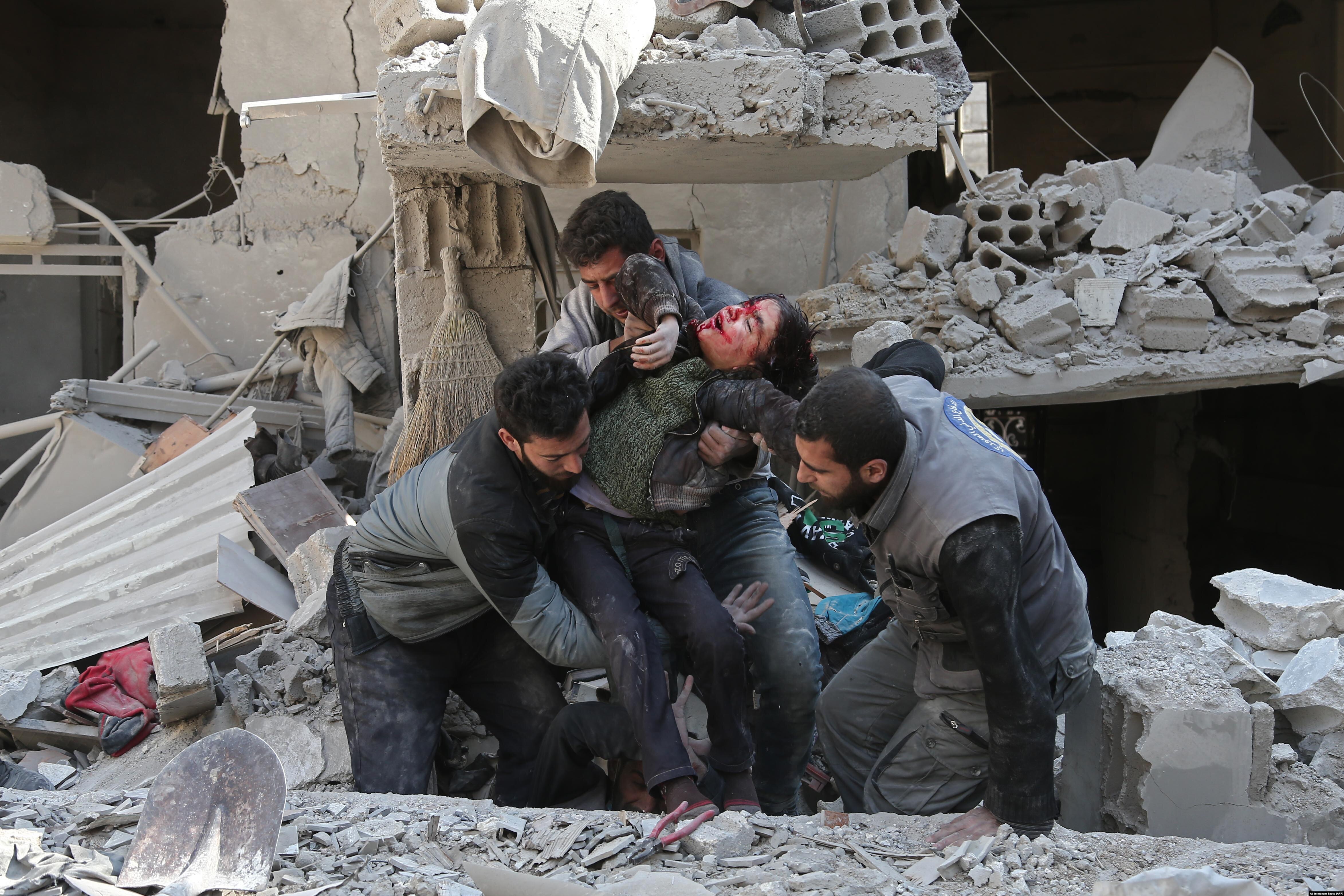 На Западе и в Организации Объединенных Наций и в гуманитарных группах растет возмущение по поводу "разрушительных" нападений и тактики "осады и голода", которые используются сирийскими и российскими боевыми самолетами и вертолетами против повстанческого анклава вблизи сирийской столицы. Сирийская группа мониторинга прав человека заявила, что по меньшей мере 250 гражданских лиц, в том числе 58 детей, были убиты в Гуте с 18 февраля, а еще 1200 человек получили ранения.