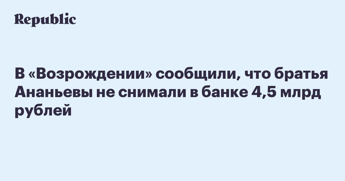 «Алексей и Дмитрий Ананьевы никогда не имели вкладов в банке “Возрождение”, и, соответственно, не могли производить по ним операций со снятием наличных, о которых написал “Ъ”, ссылаясь на анонимные источники», – подчеркнули в банке.