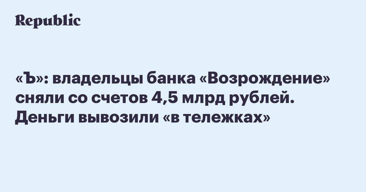 «Ъ»: владельцы банка «Возрождение» сняли со счетов 4,5 млрд рублей. Деньги вывозили «в тележках»