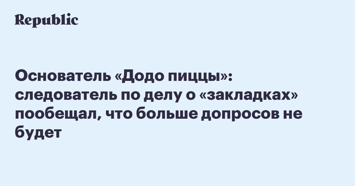 Основатель «Додо пиццы»: следователь по делу о «закладках» пообещал, что больше допросов не будет