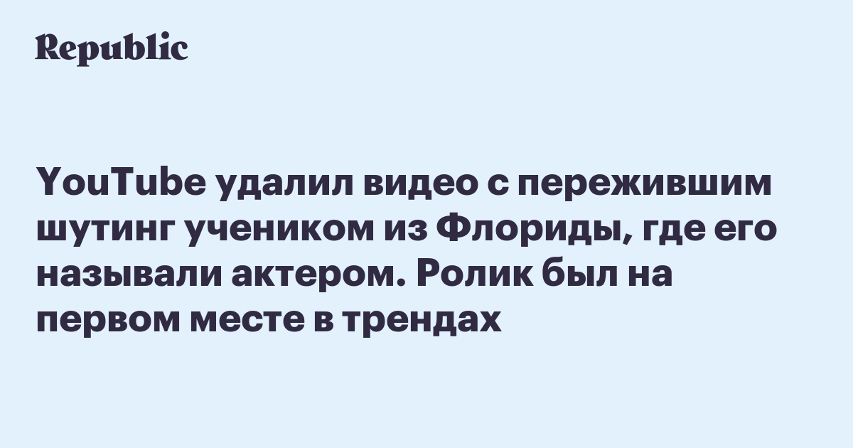 YouTube удалил видео с пережившим шутинг учеником из Флориды, где его называли актером. Ролик был на первом месте в трендах