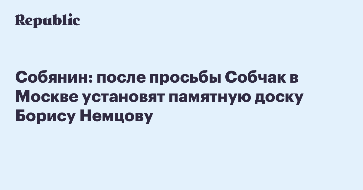 Собянин: после просьбы Собчак в Москве установят памятную доску Борису Немцову