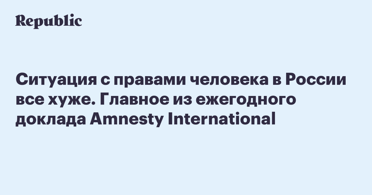 Ситуация с правами человека в России все хуже. Главное из ежегодного доклада Amnesty International