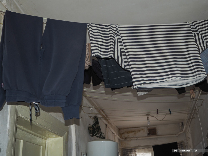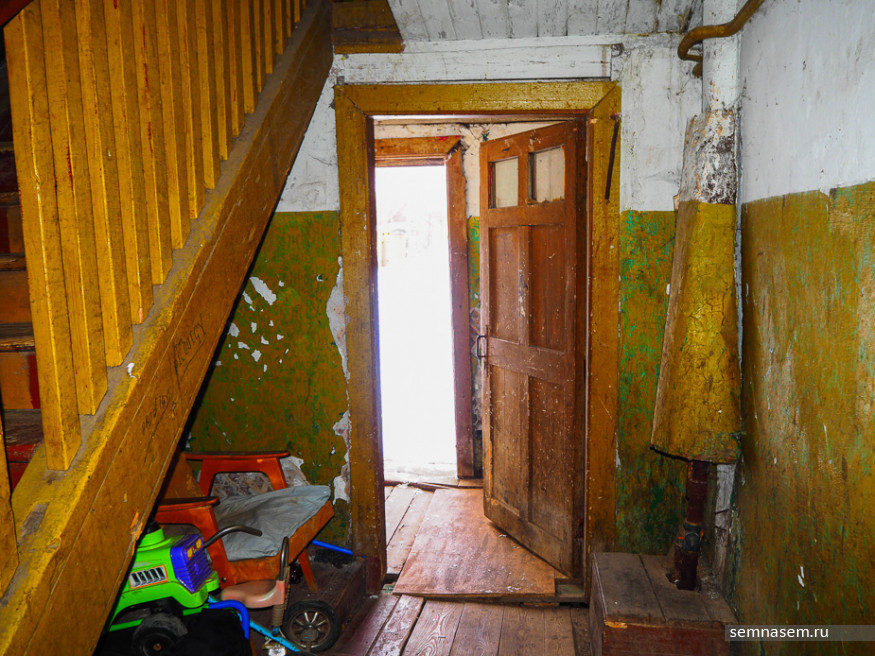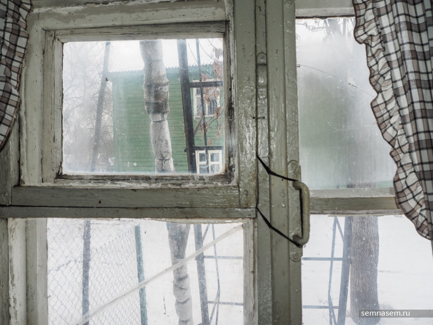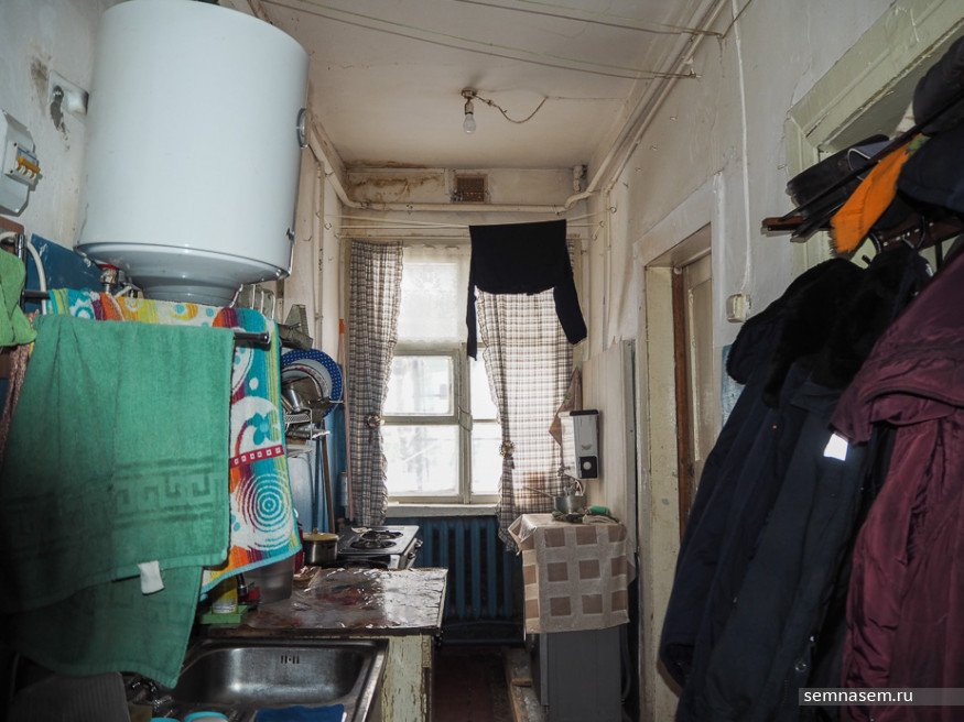 Пенсионер живет с женой и сыном в комнате на первом этаже. Чтобы в нее попасть, нужно миновать кухню, которая расположена за деревянными «воротами», и узкий коридор. На стенах коридора висят тазы и водонагреватели, вешалки для верхней одежды. Стоят в ряд современная стиральная машинка и старая двухконфорочная плита, табуретки, тумбочки и комоды. Заканчивается коридор окном с мутным, треснувшим стеклом. За ним — лестница, труба в обвязке от мороза и соседний дом.