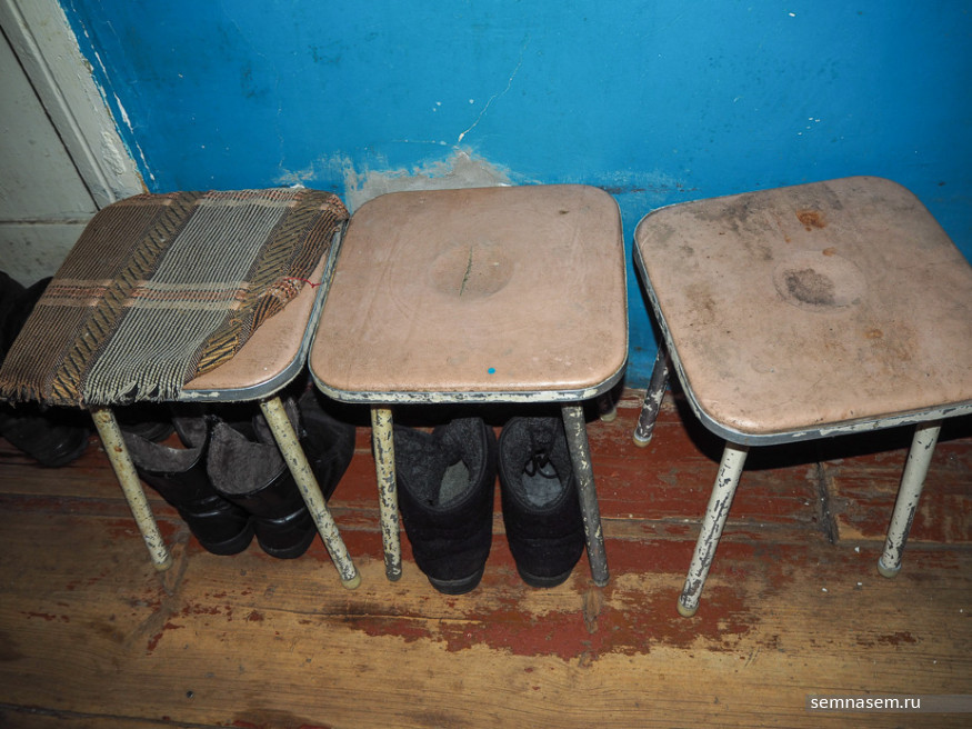 По левой стороне — жилье Лобановых. Оно состоит из прихожей, которая одновременно является столовой, и двух спальных комнат. В прихожей-столовой мы и разместились.