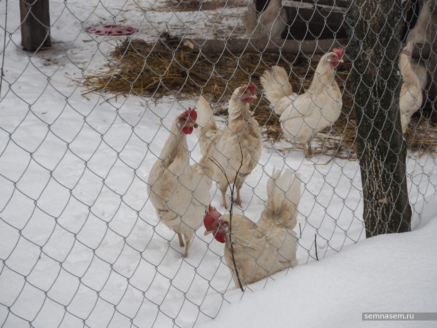 Мы проходим между полуразрушенными сараями, куры «выгуливаются» на снегу, прикрытом соломой, но при виде незнакомого человека тут же убегают в сарай.