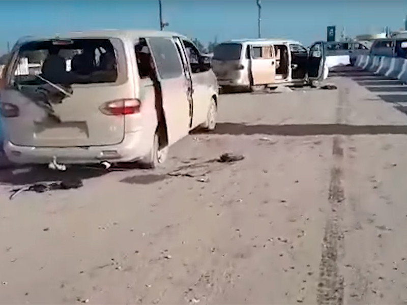 СМИ публикует видеокадры, сделанные, по его данным, на месте происшествия. На них изображены микроавтобусы, "разорванные на куски бомбами и шрапнелью".