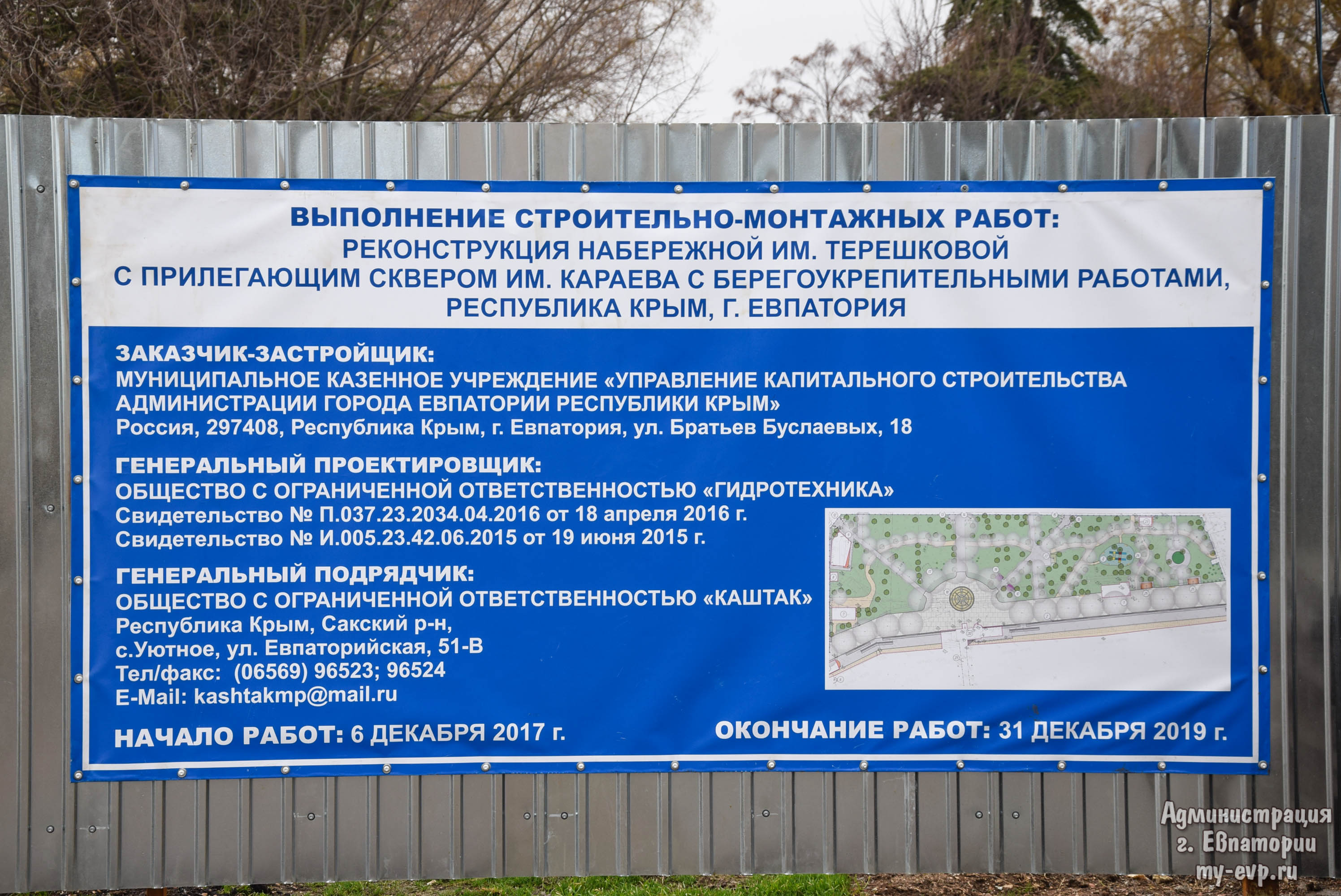 Главгосэкспертиза России одобрила проект реконструкции набережной имени Терешковой в Евпатории осенью прошлого года. На реконструкцию планируют потратить 870 млн рублей.