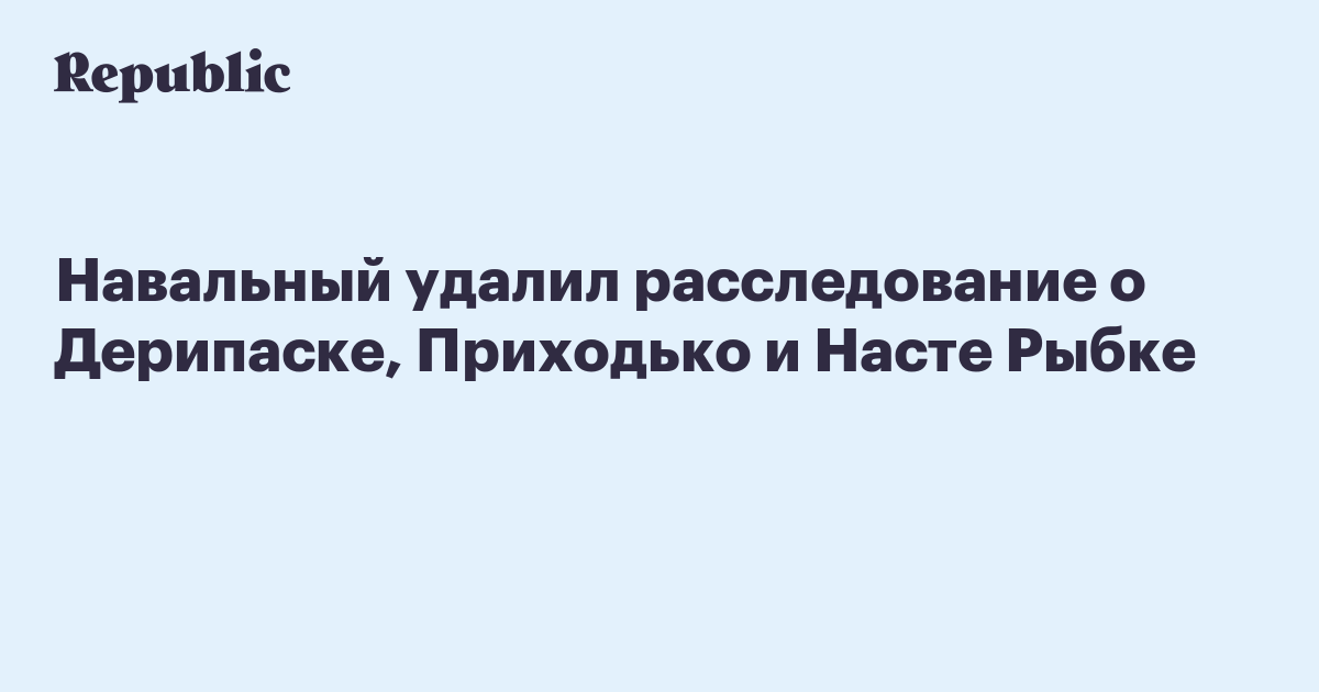 Навальный удалил расследование о Дерипаске, Приходько и Насте Рыбке