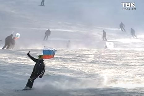 Лыжные костюмы вместо форменных кителей. Праздник настоящих мужчин красноярские силовики отметили на склонах в «Бобровом логу». С российским триколором, переобувшись в сноуборды и горные лыжи, стражи порядка устроили массовый спуск с горы.
