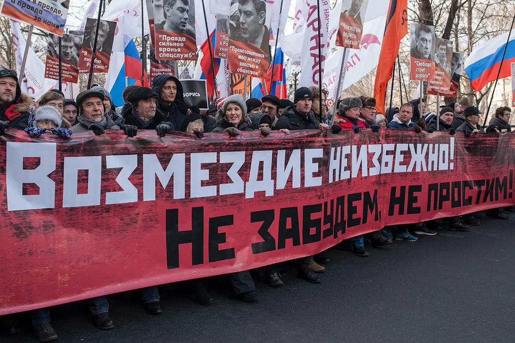 В Москве и городах России прошел четвертый Марш памяти Бориса Немцова. По данным «Белого счетчика», в столице на шествие вышли более 7 тысяч человек. В этом году мы видели новые плакаты с надписями «Свободу Оюбу Титиеву» и «Свободу питерским антифашистам». 22 февраля мэрия одобрила установку памятной доски Борису Немцову на доме политика по согласованию с его жителями.