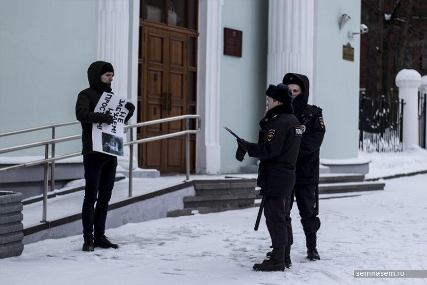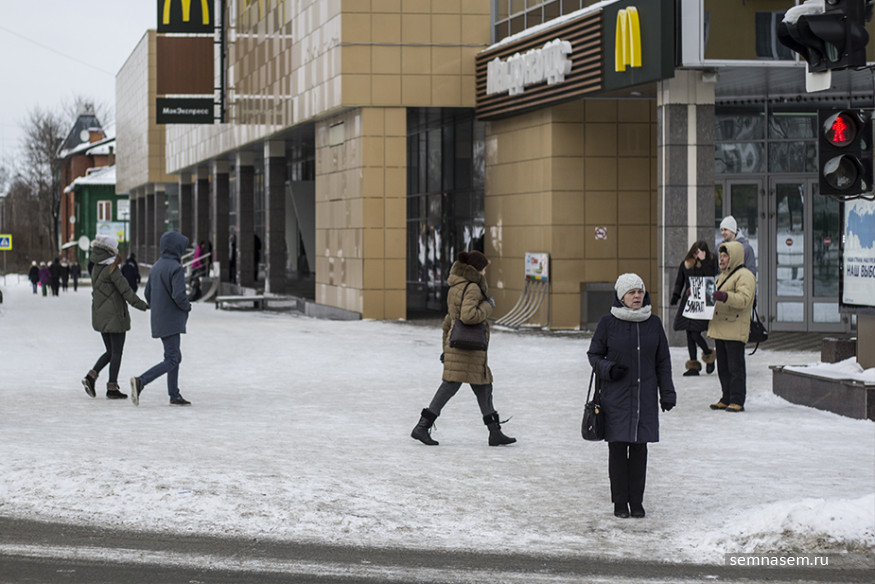 В Петрозаводске холодный ветер. Но люди с плакатами стоят вдоль всего проспекта Ленина. Их немного — 11 человек.
