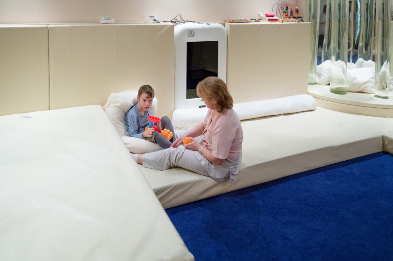 Детское отделение Марфо-Мариинского медицинского центра «Милосердие»Фото: Анна Гальперина К сожалению, пока в этом направлении не начали работать ни государственные, ни частные реабилитационные центры. Хотя из любого правила, к счастью, есть исключения. Пока что их два. В Тюмени все сдвинулось с места по инициативе детского невролога Веры Змановской: благодаря ей здесь появилась программа, включающая в себя маршрут длительной помощи каждому ребенку — постоянное наблюдение неврологов, обучение родителей и даже мобильное приложение, которое рассчитывает индивидуальный план врачебных действий.