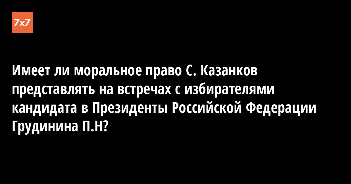 Имеет ли моральное право С. Казанков представлять на встречах с избирателями кандидата в Президенты Российской Федерации Грудинина П.Н?