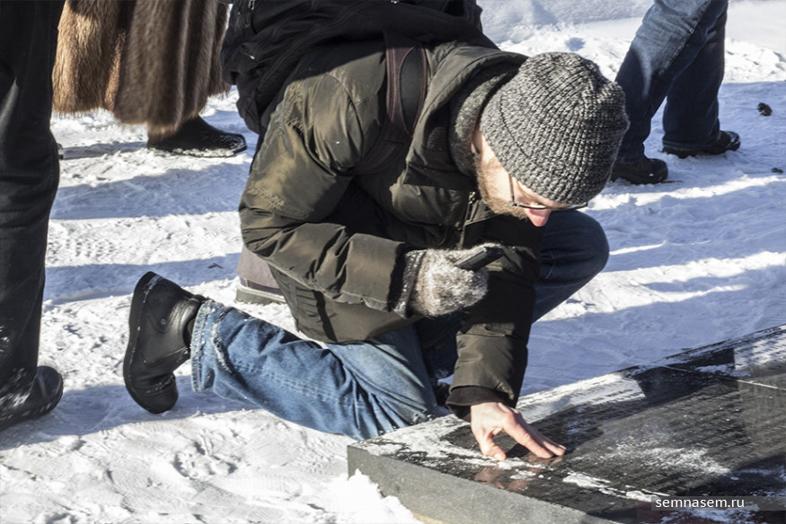 На Зарецкое кладбище пришли около 30 человек, по пути вслед за Юрием Дмитриевым они смахивали снег с памятников мемориального комплекса, читали надписи и слушали экскурсовода.