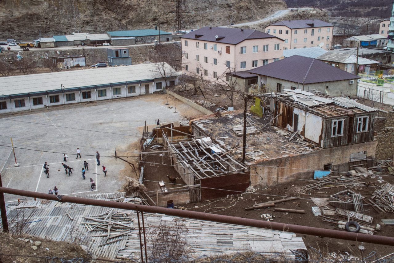 Временный больше напоминает поселок городского типа, но только крошечный и с безымянными улицами. А зачем вообще улицы, если всем известно, кто где живет? Здесь не принято закрывать двери. Если кому-то вдруг понадобятся соль или нитки, он просто зайдет к соседу, возьмет и оставит записку. Всего во Временном обитают 230 семей, около тысячи человек. Пятиэтажные и трехэтажные дома соседствуют с деревянными постройками. Во всех жилищах есть горячая вода, проведены канализация и вай-фай. На балконах сушится аварская колбаса, во дворах припаркованы отечественные автомобили. Окна домов смотрят на скалистые горы — они так близко, что кажется, будто нет жизни за ними. Здесь совершенно теряешь ощущение горизонта, дали, перспективы. Чтобы увидеть цвет неба, нужно высоко задрать голову.