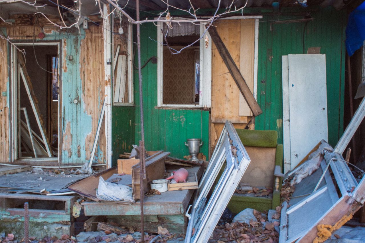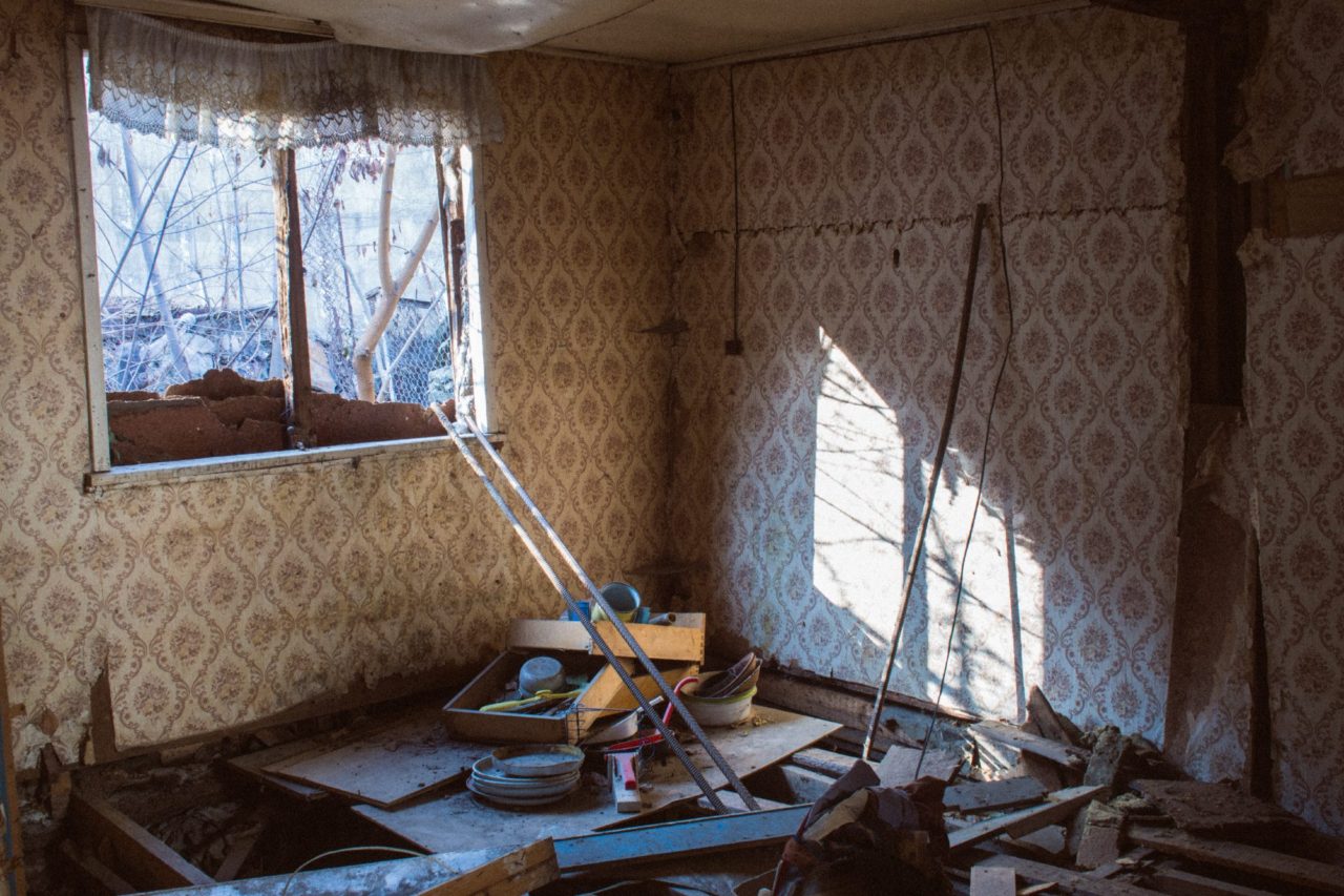 Некоторые дома остаются заброшенными. Хозяева не смогли их восстановить и уехали из поселкаФото: Диана Хачатрян По словам местных жителей, за несколько дней до снятия КТО в поселок пригнали автобусы с гастарбайтерами: то ли вьетнамцами, то ли китайцами. Рабочие быстренько подмели мусор, закопали его в землю и выровняли бульдозером. Когда один из местных электриков вошел в поселок, чтобы помочь с проводкой, ему приказали не смотреть по сторонам. Невозможно было не обратить внимание на огромную кучу из тряпок, мебели, ковров и личных вещей перед входом в пятиэтажку. Размером — до второго этажа.