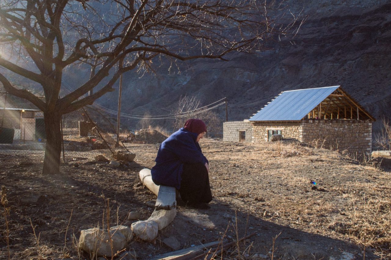 Халимат сидит на лавочке и смотрит себе под ноги. Солнечные лучи бьют ей в спину. Раньше она любовалась фруктовыми садами, а сегодня там пустота. Будто нескольких сотен деревьев (среди них были те, что человек не мог обхватить руками) никогда не существовало в природе.