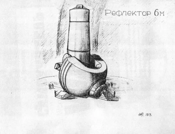 Тем временем вызревала мысль о создании шестиметрового телескопа. Решение было принято ученым советом, началось обсуждение проекта. Иоаннисиани уже был переведен на завод ЛОМО, ему было поручено проектирование самого большого в Советском Союзе телескопа с диаметром зеркала 2,6 м (подобные телескопы были в США — телескоп с зеркалом 2,5 м Макдональдской обсерватории на английской монтировке). Мы с Иоаннисиани горячо обсуждали возможную конструкцию монтировки и пришли к выводу, что лучше всего выполнить ее вилочной. Вилка должна была покоиться на платформе для большей устойчивости, но были и другие предложения.